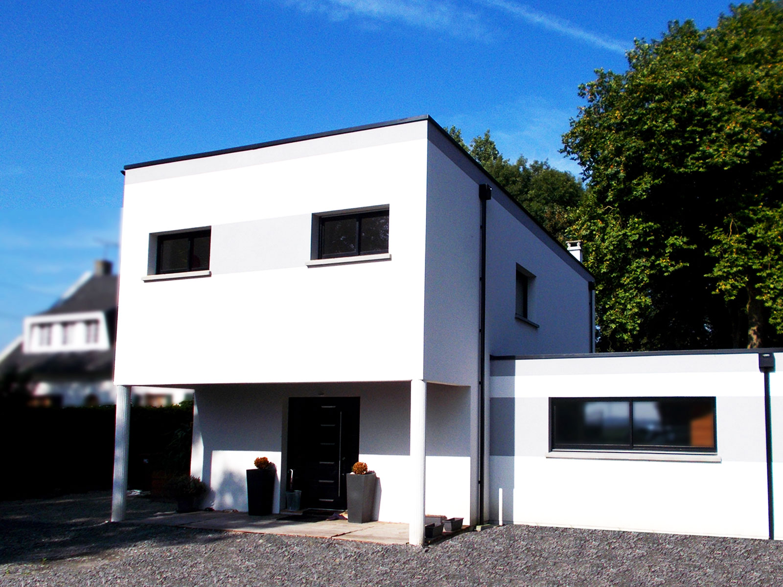 Une maison cubique, moderne et fonctionnelle.