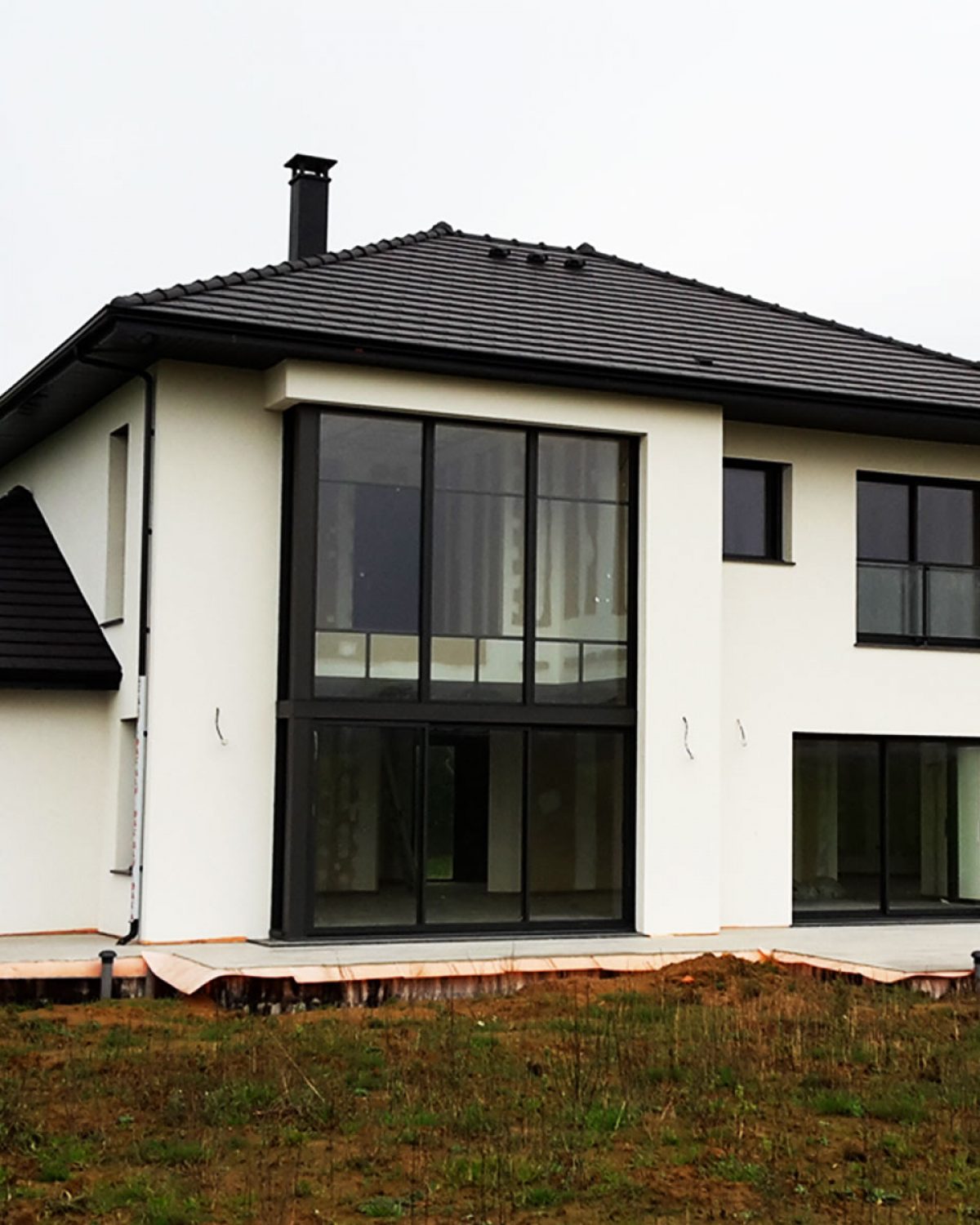 Cette belle réalisation se caractérise par une architecture qui offre une mixité des espaces répondant aux besoins de toute la famille. Une lumière naturelle traversante s’invite tout au long de la journée grâce aux grandes baies vitrées qui habillent chaque pièce. Les heureux propriétaires ont trouvé dans cette maison à la fois familiale, moderne et unique, le style de vie qui leur correspond.